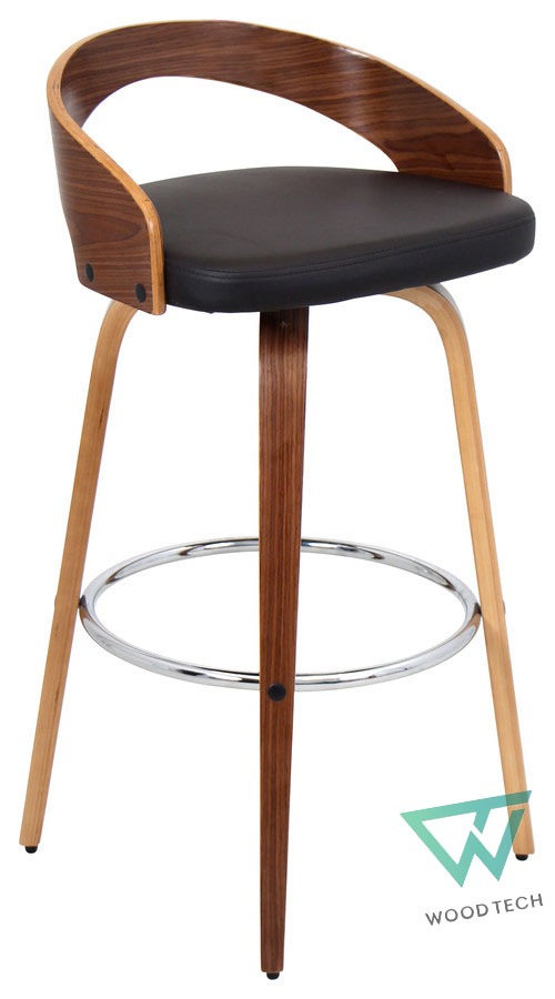 Thiết kế ghế bar gỗ óc chó với sự uốn cong tinh tế trong lưng ghế, 3 chân tròn như hình vòng cung tinh tế với thiết kế hiện đại như kết hợp ghế đệm có thể xoay 180 độ. Cùng với đó là thiết kế chỗ gác chân sáng bóng tạo phong cách thiết kế hiện đại đậm nét riêng trong mẫu ghế gỗ óc chó - ghế đẩu.