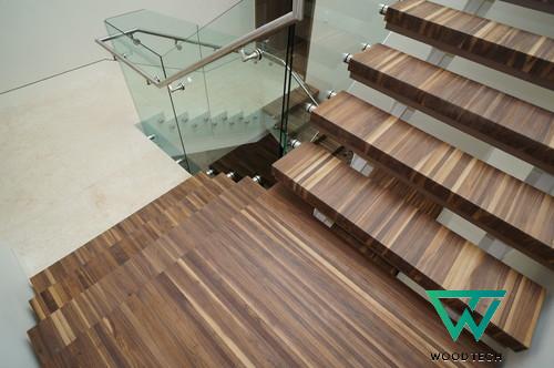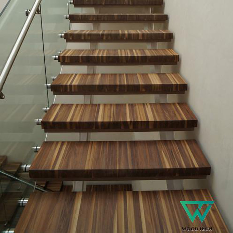 Cầu thang gỗ óc chó hiện đại kiểu Mỹ WT - 0004 tạo sự ấn tượng không hề nhỏ với vân gỗ gần như tương đồng với nhau tạo nét hài hòa hiếm có trong thiết kế cầu thang gỗ đặc biệt là go oc cho kết hợp lan can kính tạo nét tinh tế đẹp mắt. Khi sự kết hợp khéo léo giữa gam màu trong suốt của chất liệu kính cường lực kết hợp với gam màu trầm của gỗ óc chó giúp không gian như tăng thêm nét tương phản giúp không gian như có chiều sâu vậy.