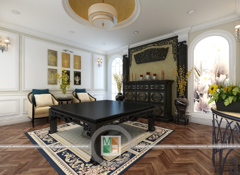 Thiết kế nội thất nhà phố với gỗ óc chó tại Tôn Đức Thắng - Chị Nhung