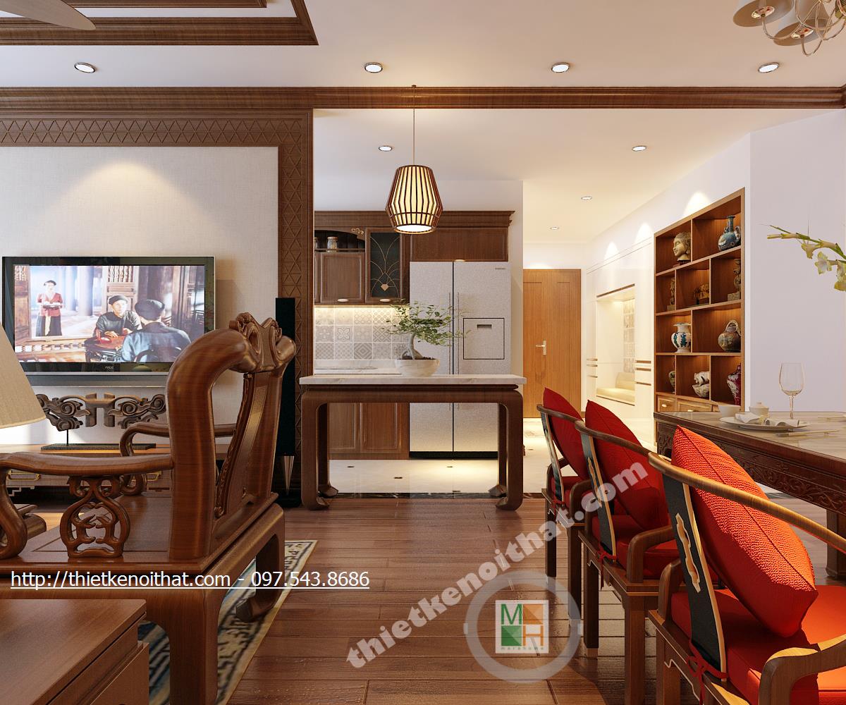 Thiết kế nội thất gỗ óc chó tại chung cư Golden Palace