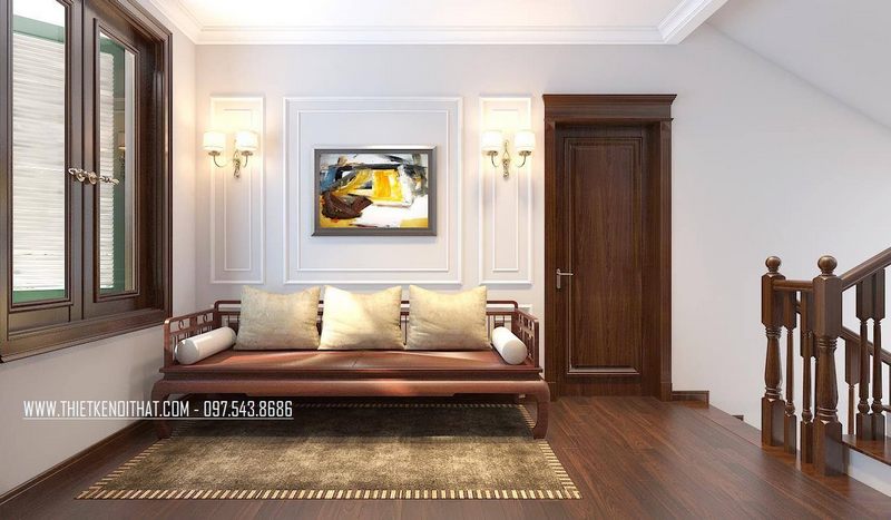 Sàn gỗ được đánh giá cao về khả năng chịu ẩm và nhiệt độ cao, mang đến nét đẹp trang trí cho phòng thờ.