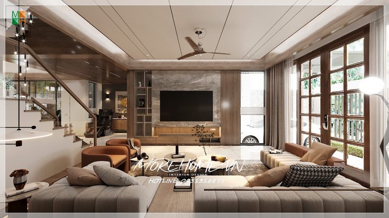Không gian biệt thự được nhiều khách hàng lựa chọn bởi mẫu bàn thờ lớn với chất liệu gỗ óc chó.