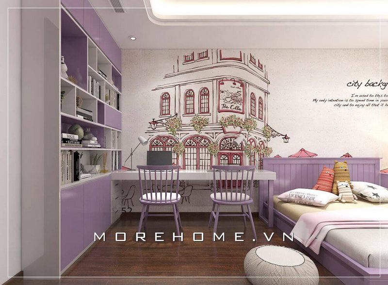 bé Mẫu thiết kế phòng ngủ hiện đại và tiện nghi dành cho bé trai được trang bị nội thất gỗ công nghiệp cao cấp và các hình khối hình họa về nước pháp đẹp được tạo ra từ giấy dán tường sẽ làm cho phòng của con bé trở nên ấn tượng.